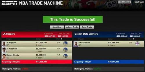 在这笔交易中,勇士队的主要交易对象是洛杉矶快船队的球星保罗·乔治。乔治作为一名全明星球员,拥有出色的得分能力和防守能力,一直是联盟中的顶级球员。而勇士队为了得到这位实力派球员,可谓是下了血本。